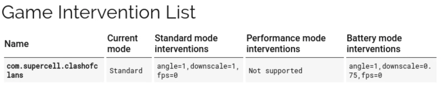 "android.game_interventions" 数据源收集每个游戏的可用游戏模式和游戏干预列表。