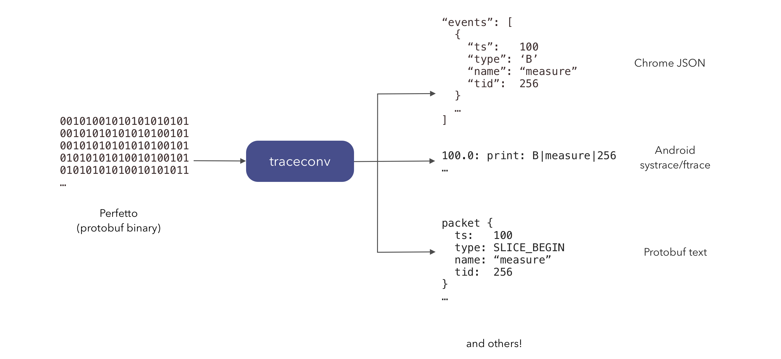 Perfetto 的原生 protobuf trace 格式可以使用 traceconv 工具转换为其他格式。